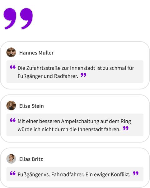 „Statt vieler einzelner Kanäle gibt es jetzt eine zentrale Anlaufstelle für alle städtischen Projekte. Das macht Beteiligung einfacher und wirksamer. Besonders wertvoll ist außerdem die individuelle Betreuung durch das engagierte Team, wodurch wir analoge und digitale Beiträge nahtlos verbinden und breite Beteiligung sichern konnten.“